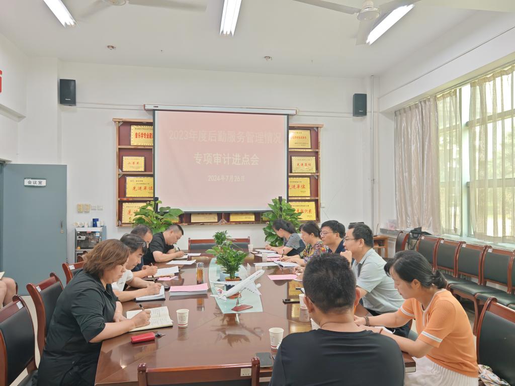 7月26日上午,学校2023年度后勤服务管理情况专项审计进点会在朝阳校区音乐学院会议室召开,校党委委员、副院长常青林出席会议并讲话,审计组成员、计财处处长、被审计单位党政领导班子成员及相关工作人员参加会议。会议由审计处副处长、审计组组长张庆利主持。